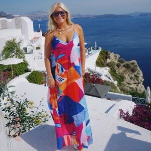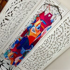 Nicole Miller New York Colorful Maxi Dress in excellent condition - bought new, worn once in vacation in Mexico. Festive bright colorful patterned dress - Picasso painting vibes!