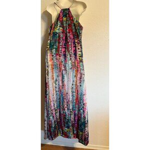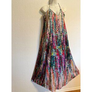 Nicole Miller New York Multicolor Halter Maxi Dress M Polyester Blend Boho Beach