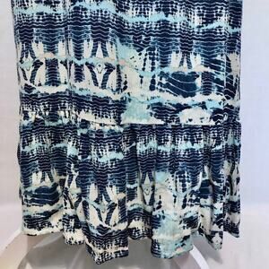 NWT. Maxi Dress for Women Size 8. Tye Dye - cream, teal, light blue, hint of light peach), pull on, elastic waist, strap design back, ruffles bottom part, internal lining. Pictures are part of description.