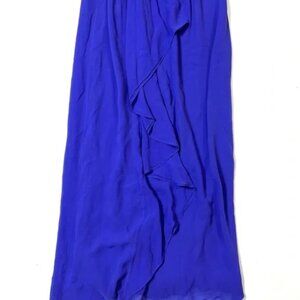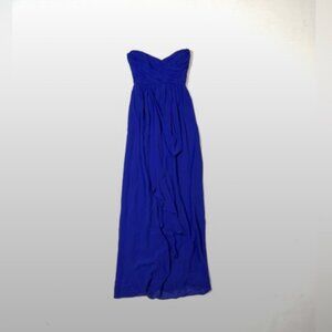 Strapless blue dress with pleated and ruffle detail and back zipper closure size 2