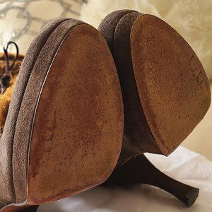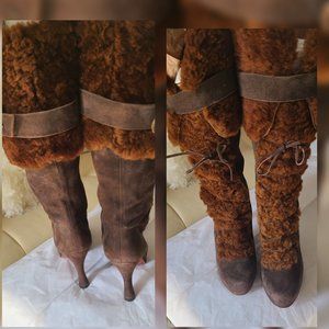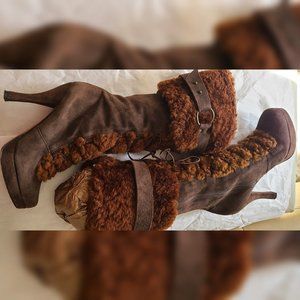 RARE Nicole Miller New York Shearling And Suede Leather Platform Boots Brown Sz 9.5. Worn Twice And Has Been Kept Stuffed And In Prestine Condition. No Box.