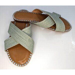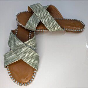 Nicole Miller New York Strappy Sandals Sage Green & Off White Sz 9 Wms