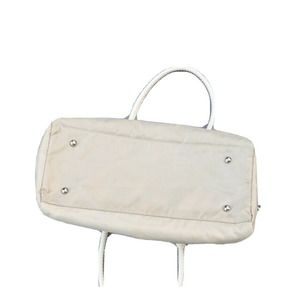 Nicole Miller Nylon Duffle Bag with Faux Croc Handles Cream Large Tan Beige