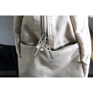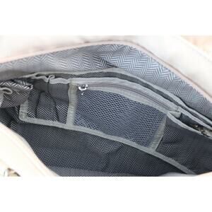 Nicole Miller Nylon Duffle Bag with Faux Croc Handles Cream Large Tan Beige