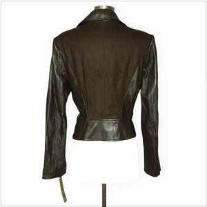 Nicole Miller Olive Green Leather Wool Combo Panel Moto Style Jacket NWT New M