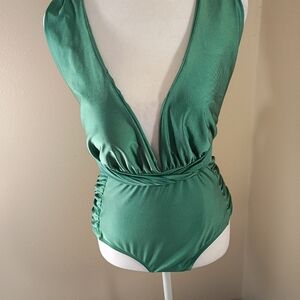 Nicole Miller One Piece Convertible Swim Side Ruching Deep Lake