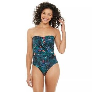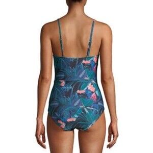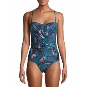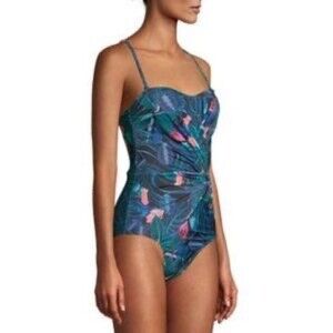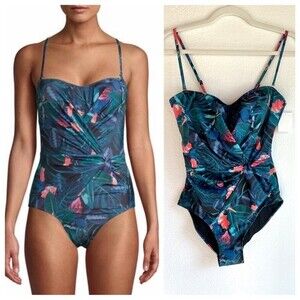 Nicole Miller One-Piece Swimsuit With Drape Twist Knot in Green Floral - Size M