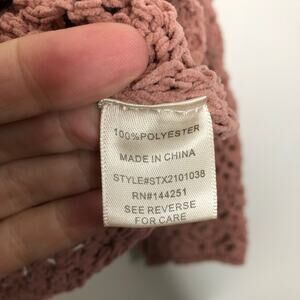 Nicole Miller Open Weave Crochet Knit Crop Sweater Clay Wide Neck Beachy Boho M
