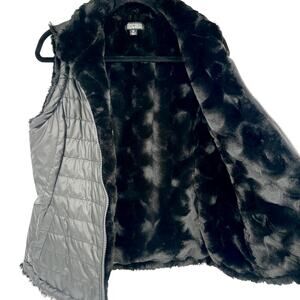 Nicole Miller Original Black Reversible Faux Fur Puff Vest Size M