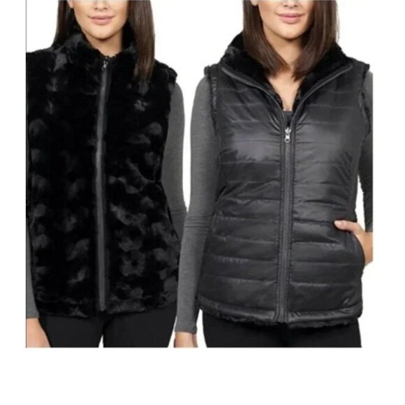 Nicole Miller Original Black faux fur Reversible Vest Puffer Vest, Quilted