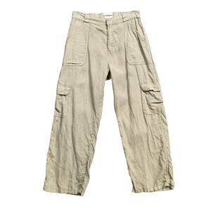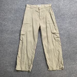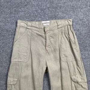 NICOLE MILLER PANTS WOMENS M MEDIUM HERB LINEN CARGO POCKETS LIGHTWEIGHT ZIP FLY