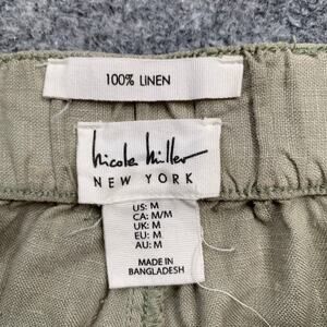 Nicole Miller Pants Womens M Medium Herb Linen Cargo Pockets Lightweight Zip Fly