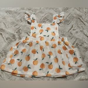 Adorable kids dress featuring a playful peach print. Perfect for any occasion.