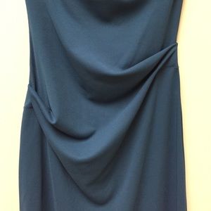 Slimming blue petite dress , asymmetrically rouched for a graceful fall of the silky fabric.