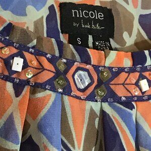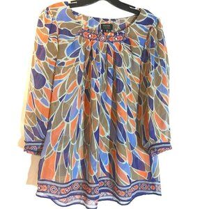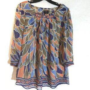 Nicole Miller Psychedelic Prairie Top Blouse Sheer Hippie Bohemian Size Small