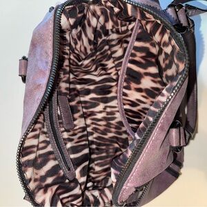 Stylish Nicole Miller satchel in a rich purple hue. Features dual handles and a detachable strap. Perfect for any occasion.