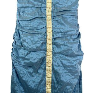 Nicole Miller Ruched Sleeveless Mini Dress Metallic Blue and Gold Size 10 NWT