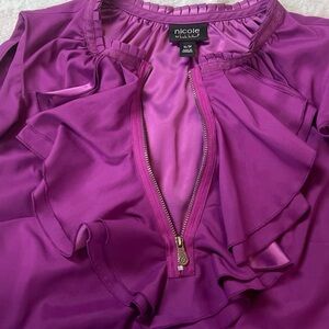 Nicole Miller Ruffle Neckline Tank Top Sleeveless Blouse Solid Purple Pullover M