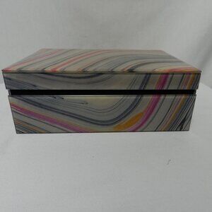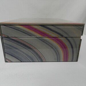 Nicole Miller Sand Swirl Wavy Acrylic trinket box velvet lined decor 10" x 7"