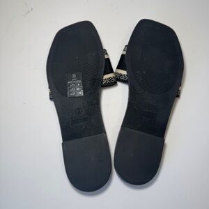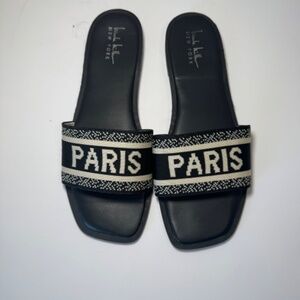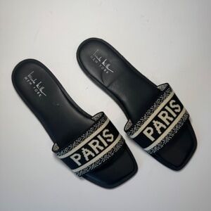 Nicole Miller Sandals Women's Size 9 Black White Slip On Paris Print Resort