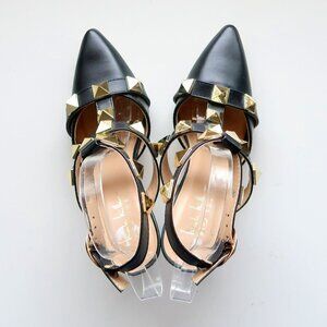 Nicole Miller Selty Black & Gold Pointy Toe Studded Heels / Pumps / Sandals 6.5