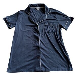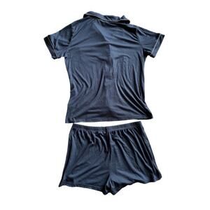 Nicole Miller Set Navy Pajama Size Medium Pocket Button Up Top Shorts Soft