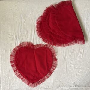 Nicole Miller Set Of 4 Red Heart Shape Ruffles Valentines Day Christmas Placemats