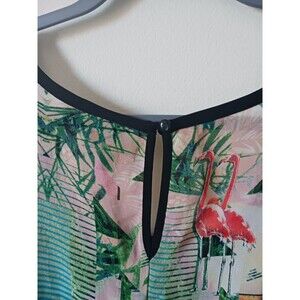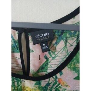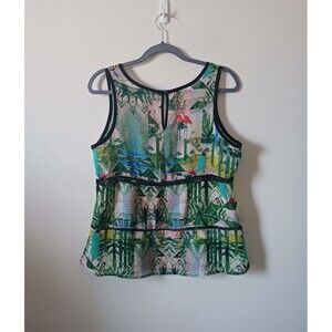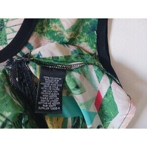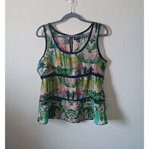 Nicole Miller Sheer Tank Top Tropical Colorful Keyhole Green Orange Size M