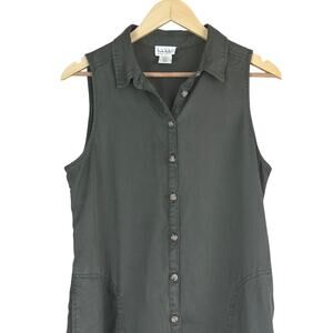 Nicole Miller Shirt Dress Womens M Olive Green Button Down Sleeveless Minimalist