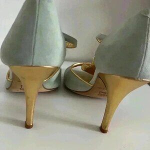 Beautiful, gold and mint green suede with stone detail. In great condition heel size shown in picture measurement.