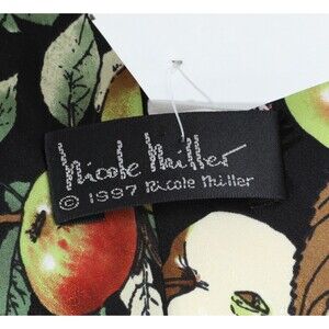 NICOLE MILLER 100% SILK MENS TIE 1997 DEADSTOCK NEW WITH TAGS MULTI FRUIT & FLORAL PRINT Y2K 90S - HAND SEWN
