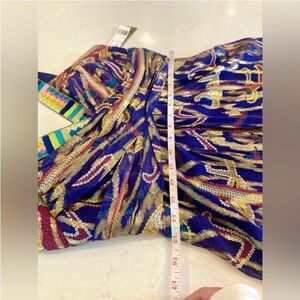 Nicole Miller Silk Sheer Metallic Aztec Cleopatra Multicolor Goddess Maxi Size 6