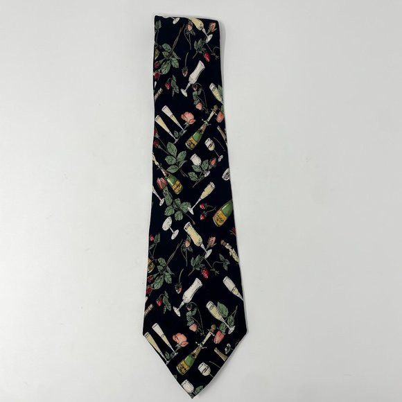 Nicole Miller Silk Tie Champagne Strawberries Roses 4" 100% Silk Vintage 1997