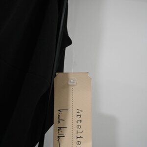 Short black dress, cut out on each side. Silver zipper. Never worn. You can wear a regular bra with this dress. It is form fitting but not tight, generally flattering.