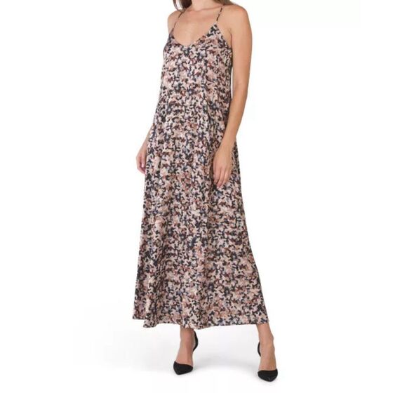 Nicole Miller Size S Leopard Printed Satin Spaghetti Strap Maxi Dress