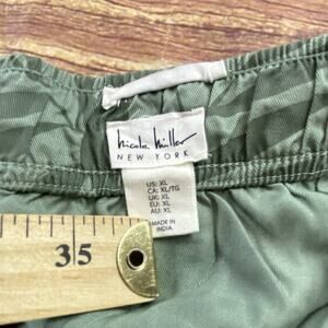 Nicole Miller Skirt Woman's XL Green Fern Leaf Lyocell Belted Mini 2-Pocket