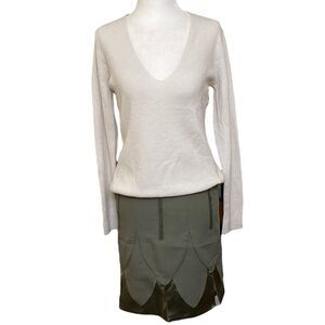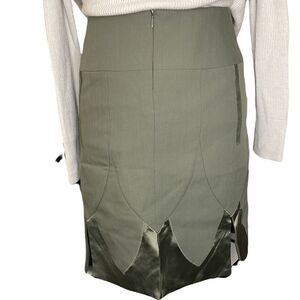 Nicole Miller Slit Multi Green Color Leaf Scallop Mini Pencil Skirt