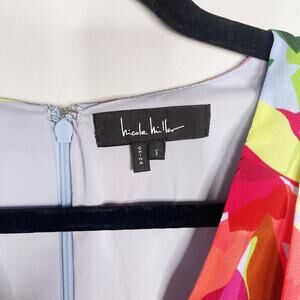 Nicole Miller Small Blue Pink Floral Oasis Silk Ruffle Midi Dress VNeck Cocktail