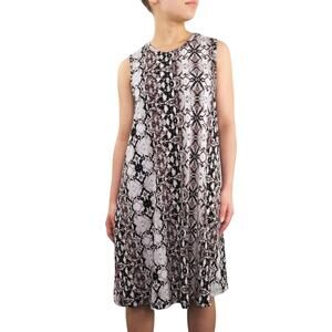 Nicole Miller Snakeskin Dress. High Neck Sleeveless, Tunic Style Dress, Brown Python Snake Pattern Animal Print Mini Dress. Has Pockets! Handkerchief, Flowing Oversized Style. Looks Cute Gathered with a Belt.