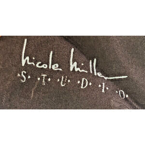 Nicole Miller Studio 100% Silk Neck Scarf Orange Brown Pink Yellow Blue Mod Flowers 53" x 11" long. Neck or purse scarf. Good used condition. Very light wear. MCM style.