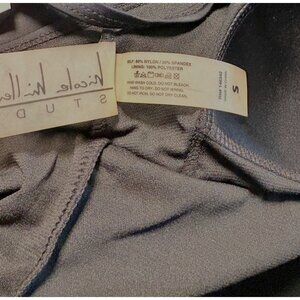 Nicole Miller Studio Bandeau Black Cross Back One Piece Swimsuit Size Small Gold