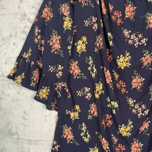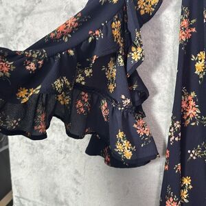 Nicole Miller Studio Navy Floral Peasant Midi Off the Shoulder Dress Size 2