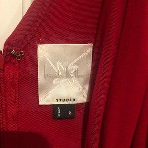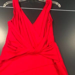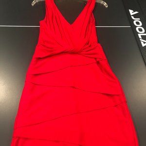 This red Nicole Miller dress is body flattering, hugging curves in just the right way; fully lined; hits above the knee