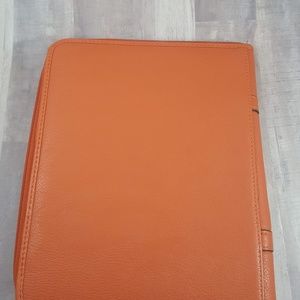 Nicole by Nicole Miller tablet case with a front pocket with 8 card slots and a main pocket with a divider. It has some dents from being stored but no scuff marks. It's a really cute design with the buckles on the front! 100% PVC Tablet Case 8" x 10". F