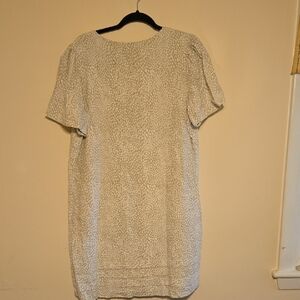 This Nicole Miller dress features a chic V-neckline and a tailored sheath silhouette, perfect for casual and work settings. The short sleeves and mini length add a modern touch, while the tan and white colors offer versatile styling options. Crafted with attention to detail, this dress is a stylish addition to any wardrobe.
