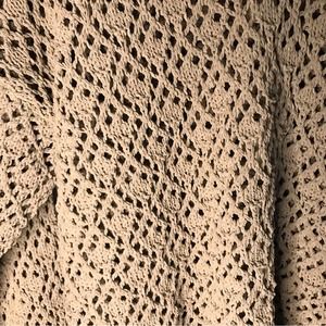 Nicole Miller Taupe Open knit V neck Drop Shoulder Cropped Sweater Size M NEW