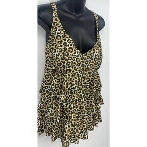 Nicole Miller Tier Tankini Swimsuit Women Plus Size 1X Cheetah Brown NWT New B88