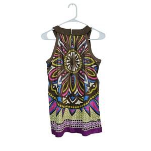 Nicole Miller Top Women Size Small Multicolor Sleeveless Pullover Blouse Satin Pockets. Excellent Condition.