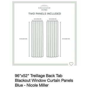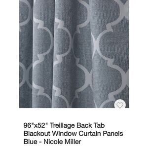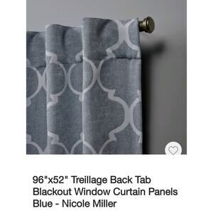 New Nicole Miller Treillage Back Tab Blackout Window Curtain Panels Blue 52"x96" Set of 2 Chambray Blue Blackout Curtain Panels. Has tags but no packaging.