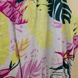 Nicole Miller Tropical Palm Leaf Linen Blend Wide Leg Jumpsuit Pockets Size L